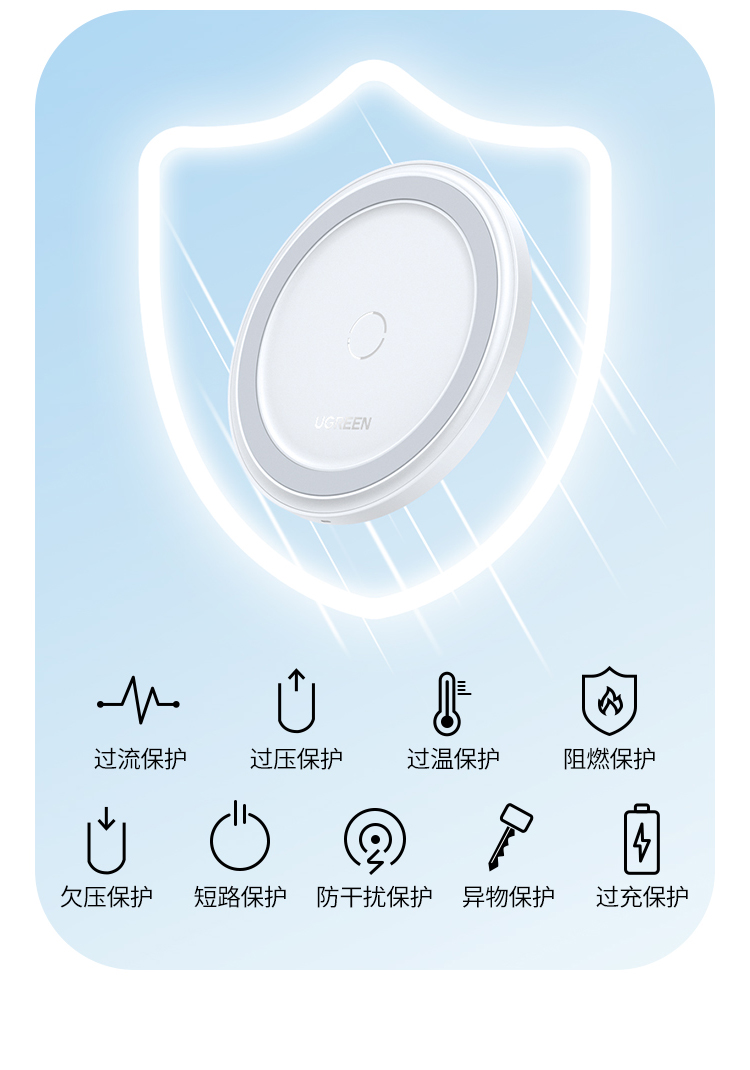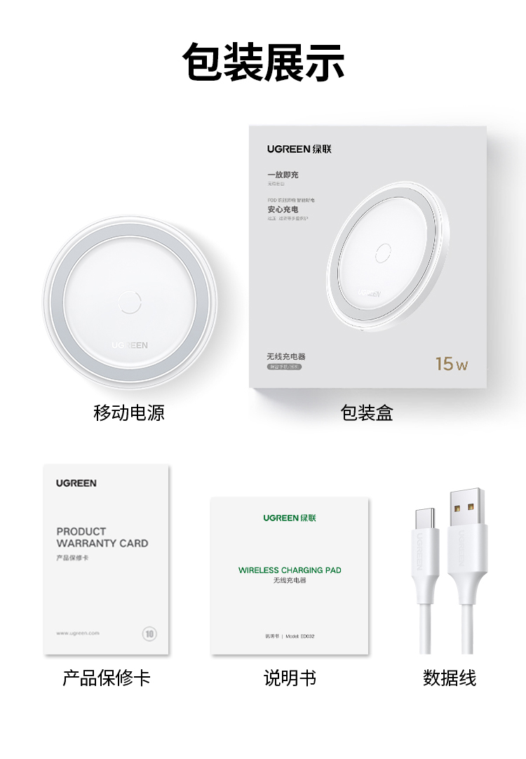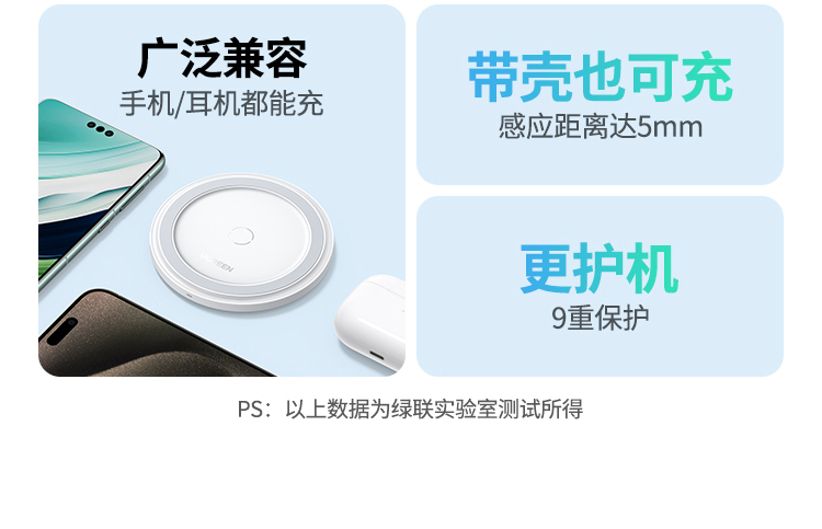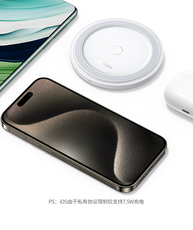商品名称:绿联无线充电器15W快充适用于苹果小米三星OPPO华为iPhone17/16/15pro手机14耳机智能感应便携桌面充电底座板