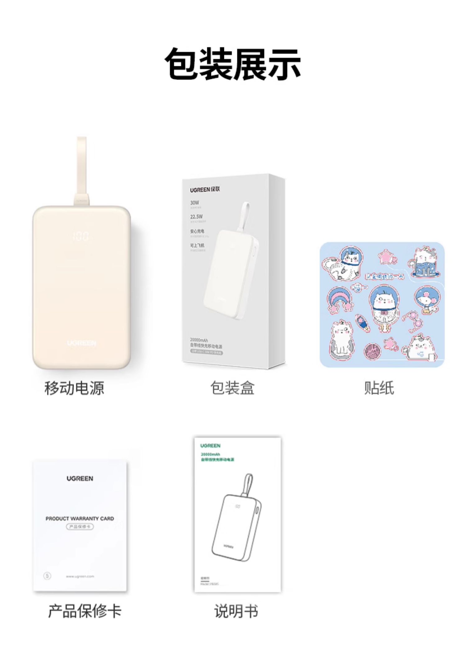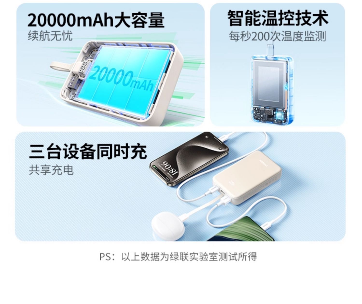 商品名称:绿联 三合一磁吸无线充电宝PD20W/18W移动电源带支架 通用iPhone12/11/XR/8华为手机 支持MagSafe/SCP快充